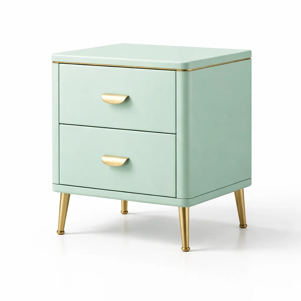 Comodino in legno e metallo verde salvia con maniglie dorate