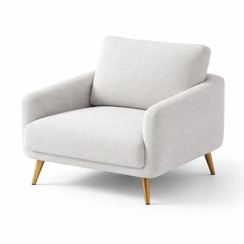 Poltrona in tessuto poliestere grigio con gambe in legno massello